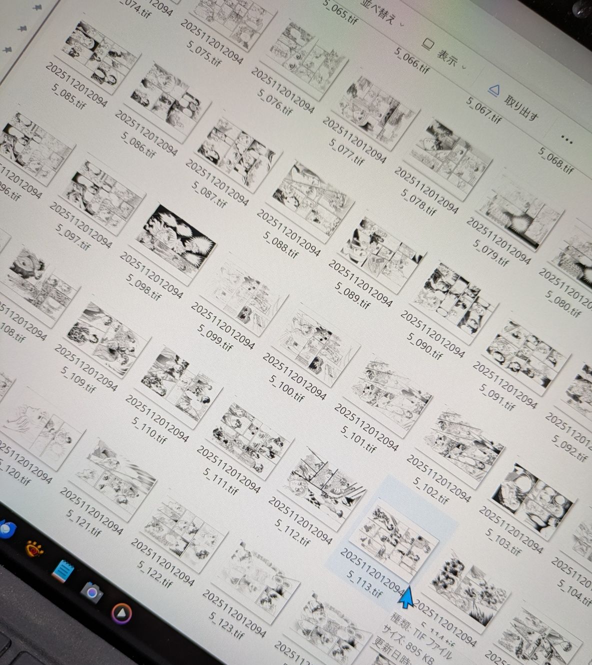ついに師走に突入いたしましたね! こんにちはアトリエ高階の山野にわとりです。 前回はアトリエ高階で超特急で原稿のスキャンをする必要があり 早々に失礼しちゃったのですが。 おかげさまで↓この2千枚近い原稿が ↓無事こうなりました! 二千枚って…やっぱとんでもないな分量…。 これでもほんの一部なんですからねえ…。 そしてちゃんとリスト作成して作業したのにこれでもまだ 後で整理したら抜けがあるのなんなんですかね… ここから修正クリーニングのための作業に移るんですがそっちは地道にやりますw お久しぶりの高階先生も楽しそうにずっと造花をこしらえていらっしゃいました。 先生すごいな…お花の分量どこまで行くんだろう…。 お花畑できるんじゃないかしら…。 『地獄でメスがひかる』よりカット ★高階良子自伝的作品『70年目の告白~毒とペン~』③のおもとめはコチラ(Amazon)! ★こっそり。山野にわとり作『西遊戯画』pixiv掲載進行中。 ★こっそりその2.山野にわとり作『西遊戯画』BOOTHにて紙本通販中。 2025.11.19 Wed 16:03:41 今日はこれだけ…すっかり冬らしくなりまして、風邪やインフルにはお気をつけくださいませ。