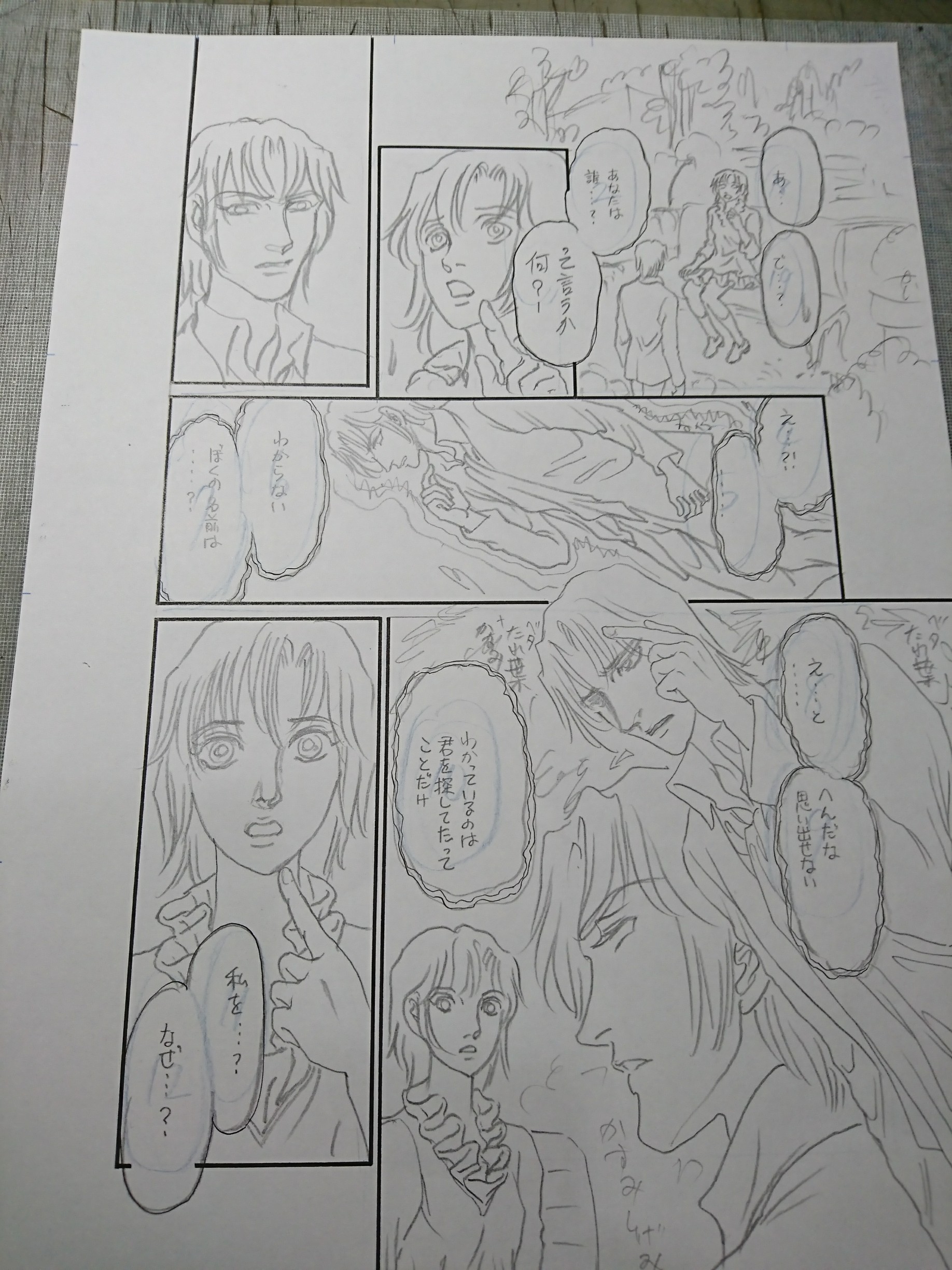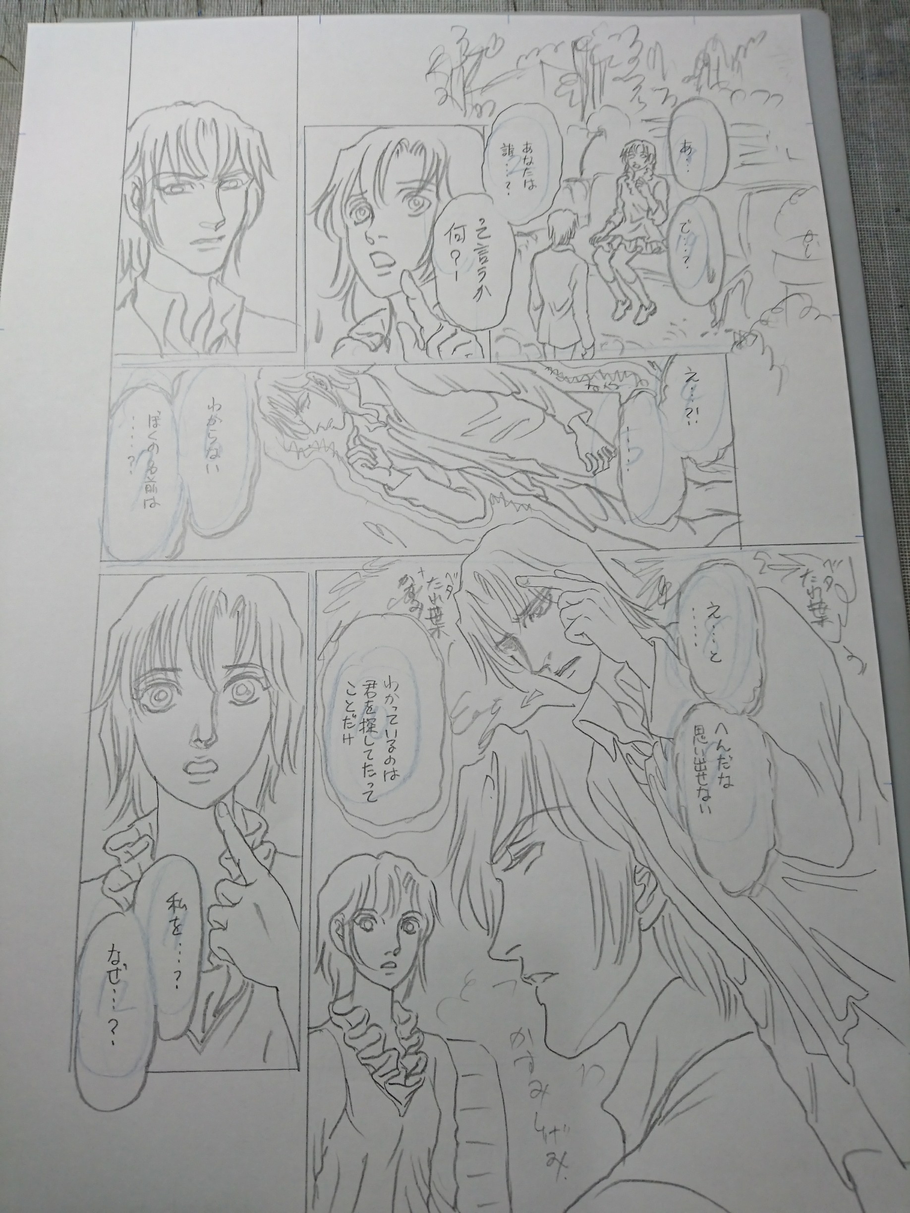 ネタがありませんので、連載企画はじめました。 ありがちではありますが、原稿のできるまで。 仕事場で、原稿がどんな風に扱われていくのかをやってみたいと思います。 アトリエ高階は完全アナログですので、もしかしてこの工程もレア物となっているかもしれませんしね。 さて原稿以前としては、先生がネームをつくります。 最初は文字で、脚本風に進めるのが高階スタイル。それから原稿用紙に、セリフだけ書き込んでおきます。 セリフしか入ってない原稿用紙に今度はトレーシングペーパーをかけて、トレペにアタリを描いていき、更にそのトレペを原稿用紙の下に回して、トレスしながら下描きをするという…。 こうして書いてみると、結構な手順ですね…。 まあ、先生はもうこの手順でないと描けないということですので仕方ありません。 こういうのは本人のスタイルが全てですから。 そうして出来上がった下書きがこちら。 ちなみに原稿用紙は厳選された画用紙です。薄いです。 手順を踏んだだけあって、さすがクリアな下書きです。 作品は、ミステリーボニータ10月号掲載のものから。 これにわたくしが枠線をひき、吹き出しなどもいれました。 次の段取りは、ペン入れ➡️背景➡️効果➡️スクリーントーンなど仕上げ、となっております。 次回に続く❗ PR