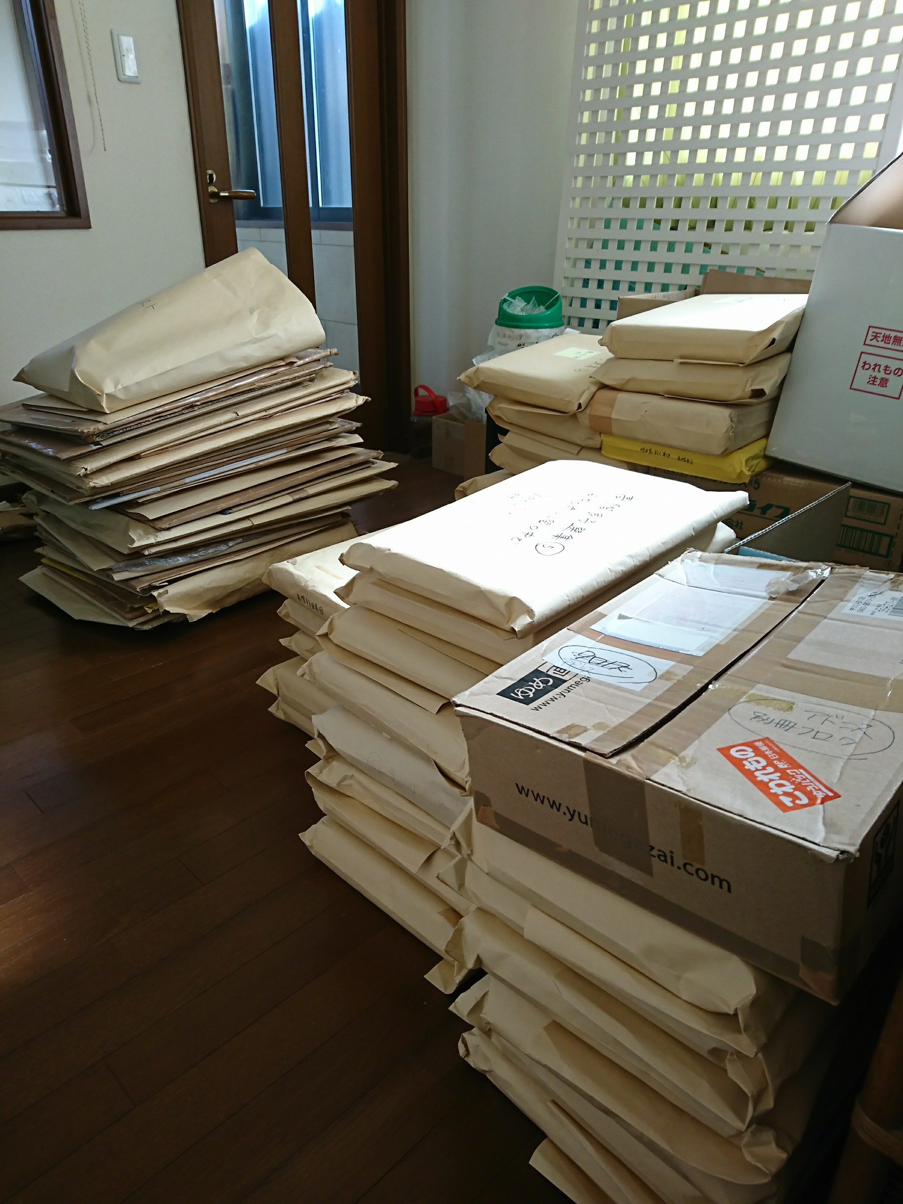 アトリエ高階の山野にわとりです。 先週はバタバタの中、めでたく原稿も届けられて何よりでした。 久しぶりの秋田書店へ直接お届けでしたが、次回から原稿ごデジタル化したあかつきには、もはやこういうこともなくなるのかと思うと感無量です。 さて、それとは別に現場中に秋田書店から大量のお届けものがありました。 秋田で保管されていた、先生の原稿です。 この分量をご覧下さい↓ もはやちょっとした引っ越し荷物です。 これでも全てではないのが怖い。 編集部も、これは宅配では大変だと思ったのか、編集さんがはるばる車で手搬入でした。 お疲れさまです! さて、にわとりの特務として、これをすべて開封の上、ページ数やタイトルなど確認、チェックの上当方のプロトコルにしたがって原稿部屋に収納するという作業があるのですが…。 …まあぼちぼち気長にやります。 PR