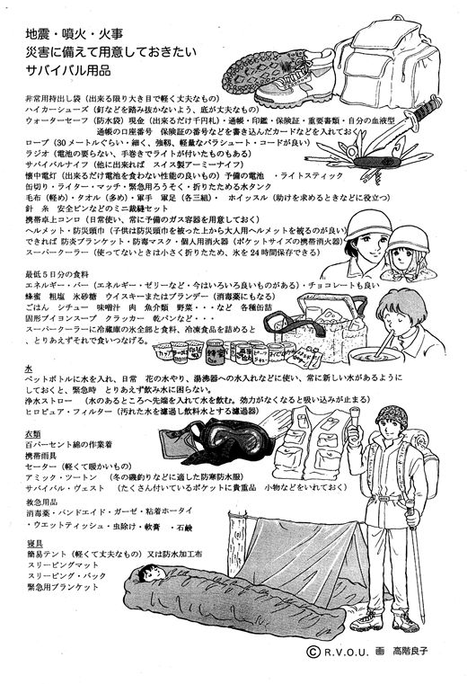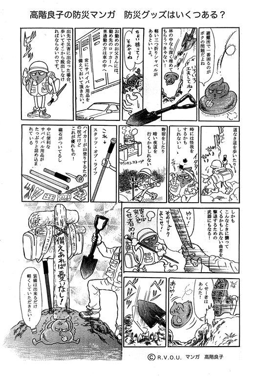 西日本には台風も来ますので、なにとぞ皆さまお気を付けください。 冷房負けしかけてるアトリエ高階の山野にわとりです(29度設定なのに)。 いよいよデジタル作業も本格化してきましたが、なにしろノウハウや作業環境を整えながら進めているので(何事もやってみないと段取りとかわかりませんからね)、実にカメの歩みであります。 それでもだいぶクリスタのことが理解できて来たんですけど、このひと有能すぎていつになったら使いこなせるやら…。 進次郎と結婚しちゃうだけのことはある。それはクリステル。 夢は3D素材を配布しまくってクリッピー長者になること。当分無理ですけどね! さて、本日は珍品を発掘したのでご紹介。 高階先生が那須でお仕事していた時、自治体のお願いで描いた防災マンガです。 もう原稿も見つからないようなので、コピーからのスキャンですが、コミックスなどに掲載されないと思いますのでかなりの珍品です。 しかもまさかの下ネタw 字が小さいと思いますが、画面クリックで大きくなるはずですのでよかったらご覧ください。 PR