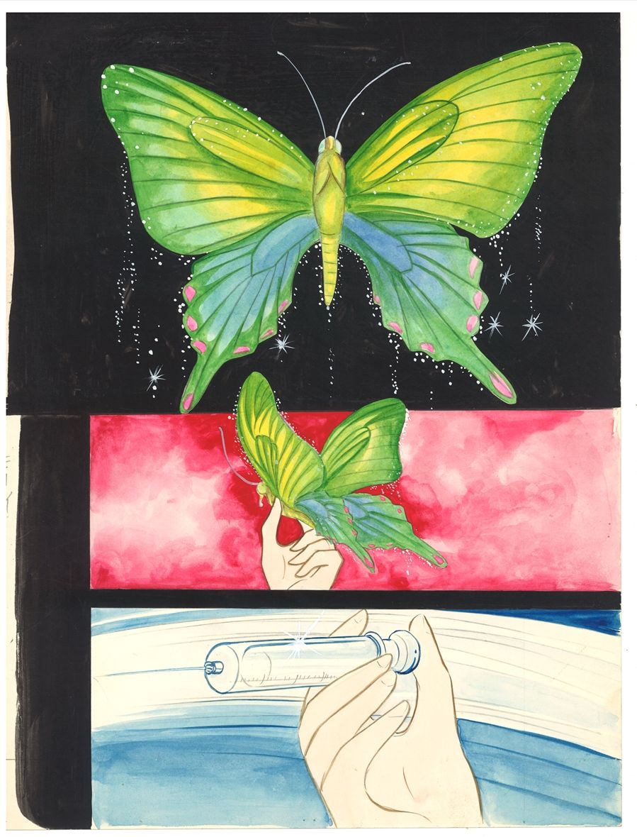ついに来週から『70年目の告白』最終回の現場に入ります。 最終回だけあって大増ページになる模様。がんばれ。 昨日『マツコの知らない世界』で漫画背景について語られてたんでガッツリ見てしまいました。 なるほどゲストの方は凄腕ですね……! ただ一筋29年には観ていた三人で「そうなんだー」(^▽^)みたいな反応になってしまって……。 すいません三人とも30年越えなもんで…。 大友作画については、AKIRAの背景も凄いのですが、我々などは『童夢』の背景こそ凄まじいのではなどと話しておりました。 あれこそ背景が物語の一部ですよね……背筋の凍る作画ですわ……。 あれはデジタルではむしろ出来ない気がしますね。 まあアトリエ高階でも背景はアナログですけど。 むしろ早いまでありますね。 『昆虫の家』 159P 1973年(昭和48年) 講談社『なかよし』付録 真逆の境遇に生まれついた二人の少女。その美と妄執、そして悲劇。 コミックス未収録の付録用カラー、かなりレアです。 PR