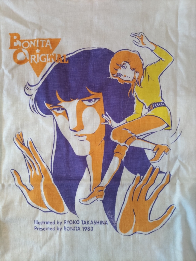 こんにちはアトリエ高階スタッフ山野にわとりです。 先日現場のお片付けをいたしましたが、高階先生が面白いものを発掘されたのでご紹介。 83年のボニータのプレゼントでしょうね。 昌吾さんと由貴ちゃんのTシャツ! 多分この世にこれ一種しかないんじゃないかな? デザインのセンスが実に80年代で懐かしいです。 カラーページの束の中から発掘した原画を添えて。 先生「もう黄ばんでるし着られないから捨てようかな」 にわとり「着られるとか着られないとかでないので!保存しておいてくださいっ!」 ……廃棄阻止しました…… 先生にはオタクっ気が薄いのでこういうところがイマイチお分かりでないw 2023.09.06 Wed 13:23:23 アトリエにて残暑お見舞い申し上げます。アトリエ高階スタッフ山野にわとりです。