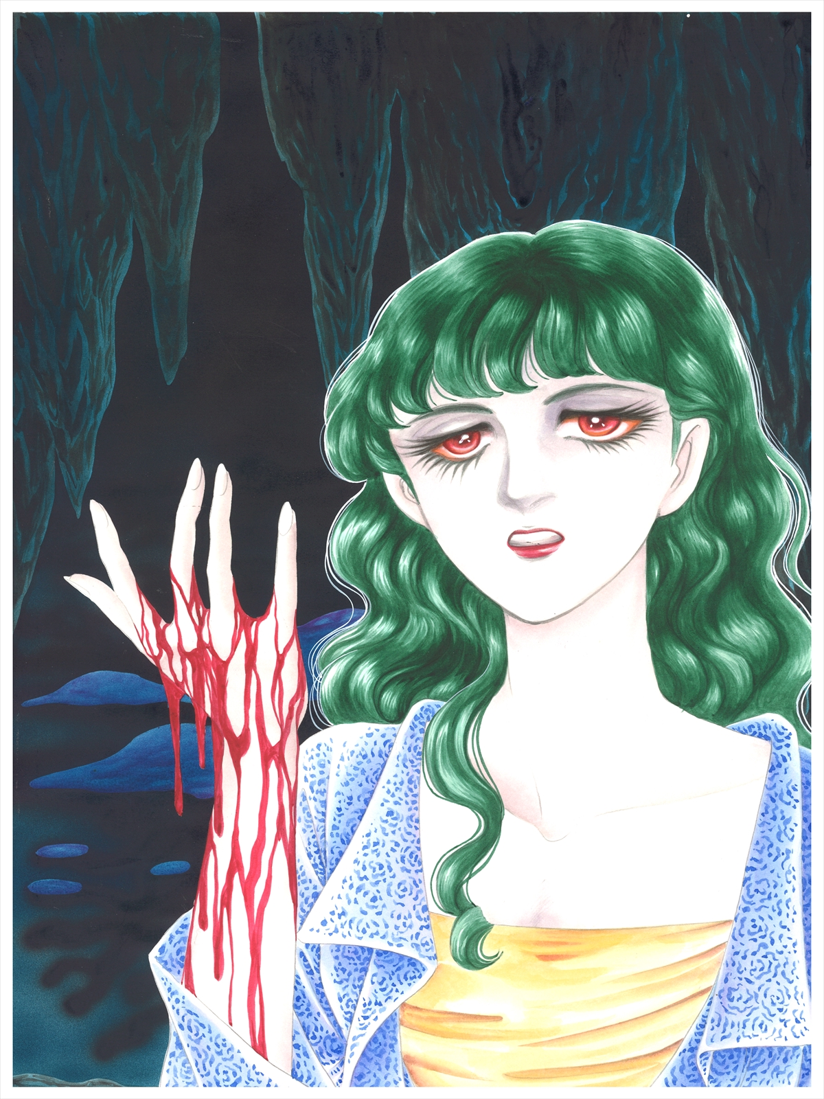 だいぶ感染者数も落ち着いてきたように思いますが、このまま終息を迎えられたら嬉しいですね。 おはようございますアトリエ高階の山野にわとりです。 もちろん感染症というのは絶えないもので、宿命的に人類はこれらと戦い続けなきゃならないのでしょう。 それでも、今現在の日本の状況というのは感染症にたいして、歴史上最強なんじゃないかと思うんですよね。 衛生状態が世界最強(いやマジで)。 経済格差の少なさ(世界比)。 識字率の高さ(世界比)。 医療の充実(民間レベルでの高さ)。 その結果の国民の栄養状態の良さ。 島国ゆえに、水際対策は有効です。 が、さりとて何も入れないわけにはいかないというのは弱点にもなりますが。 人類史上、ここまで感染症を抑え込める状態を実現した国はないんじゃあないかな。 現在制作中の、高階先生の自伝的作品なのですが、戦後間もなくの頃、まだ幼かった先生が「ジフテリア」で死にかけたというエピソードがあります。 子供のかかりやすい感染症で、今でこそワクチンなどあり、日本ではまず発生しないのですが、戦後ですと普通に死ねる恐ろしい病気です。 栄養状態が良くないのでかかりやすいし、悪化しやすいのです。ワクチンも当時は普及が十分ではないし。 先生は何とか助かりましたが、本当に病気にとられなくてよかった…。 でもこの病気、今では日本で起こらなさ過ぎて、経験のある医師が居なくてそれはそれで心配なのだそうです。 コロナなどもこのまま終息させて、「やっぱ日本は感染症に強いな~」ってニヤニヤしたいですね。 さて本日のイラストは『蛭子』。 『蛭 子 ーひるこー』 全2巻 1995年(平成7年)~1997年(平成9年) 秋田書店ミステリーボニータ掲載 日本神話の隠された神をテーマにしたダークファンタジー。 闇の神の「花」として生まれた少女の運命は。 かなり暗いです。にっこり。 2020.05.06 Wed 16:43:40 お休み中こんにちは皆様自粛ははかどっていますでしょうか。