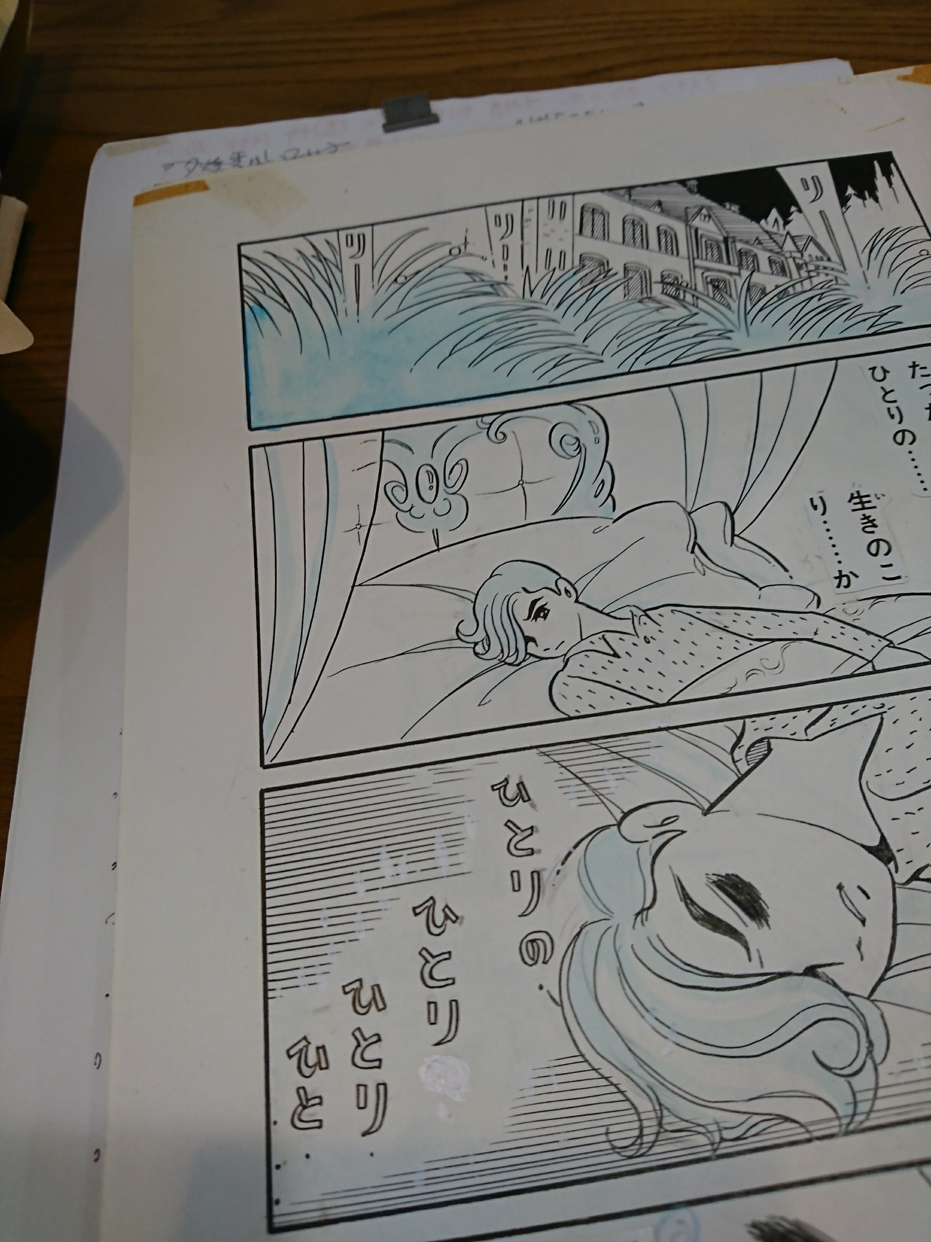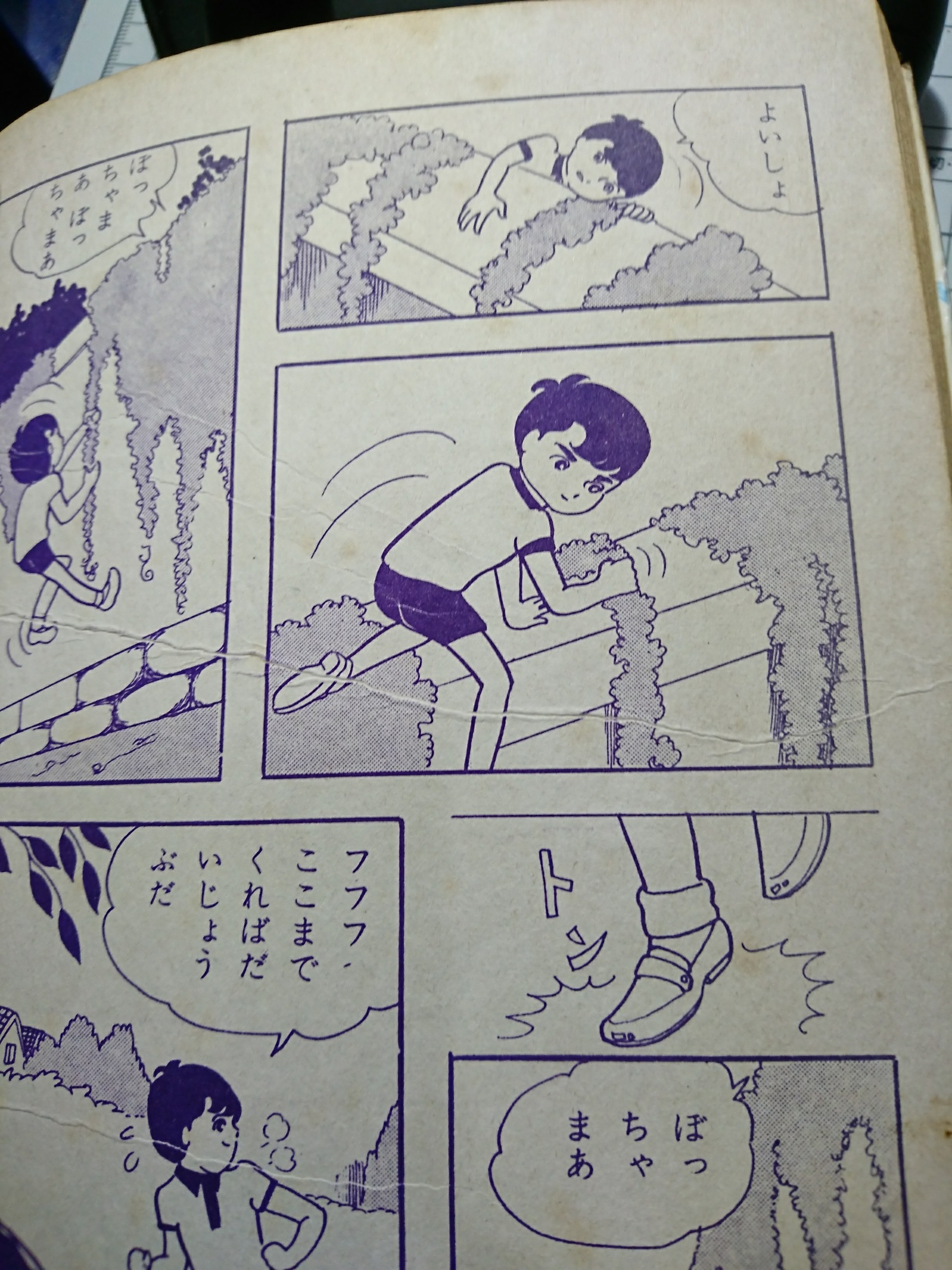本日は雑用で現場入りしております。 雑用というのは例えばこれ↓。 1967年発表『すきとおった世界』の1ページです。 このころは「なかよし」「希望の友」といった雑誌の他に、若木書房という貸本屋さんのお仕事もしていた時代なのです。 貸し本スタイルというのは、いわゆる雑誌掲載とはだいぶ趣が違ったようでして(自分はさすがに直接は知りませんが)。 まず、ほぼ書下ろしスタイルであること。したがってページ数が100以上なのが普通ですね。 そして、当時はほぼトーンは使いません。アミっぽいところは、原稿に指定しておくと版下のほうでアミっぽくしてくれるというシステムです。 上の画像をよく見ると、ところどころ青くしてありますね。これが指定なわけです。 印刷の工程を経るとこうなります(すきとおった世界の掲載本が見つからなかったので別作品ですが) このアミっぽい部分は版下での作業なんですね。 アミと言ってもいわゆる60番台ではないですね、この濃度は。 80とか81とかみたいな印象です。 あと、よく見るとトーン貼りとは違って雑です。だいぶ雑です。仕方ないんでしょうが。 昔々、石ノ森先生のサイボーグ009の初期もこういうアミ指定だった気がします。ものすごいざっくりしたアミでしたっけ。 雑誌でもやっていたのでしょうね。 でですね、現在高階原稿全データ化にいそしんでいるのですが、この時代の指定のみ残っている原稿をどうするか、ということです。 原稿には指定しか残ってないですからね。さすがにこのままではまっしろで寂しすぎます。 というわけで、雑用のひとつは原稿のデータ化及び、デジタルでアミ追加その他もろもろといったところですね。誤植も何とかしたいし。 あっ、まだ返ってきてない原稿のリスト作成もしなきゃ。いそがしいいそがしい。 2020.02.05 Wed 11:35:14 さつじんじけん!サーバー障害があった関係で、ついこないだ更新したばっかりなのにもう水曜日なんですね!