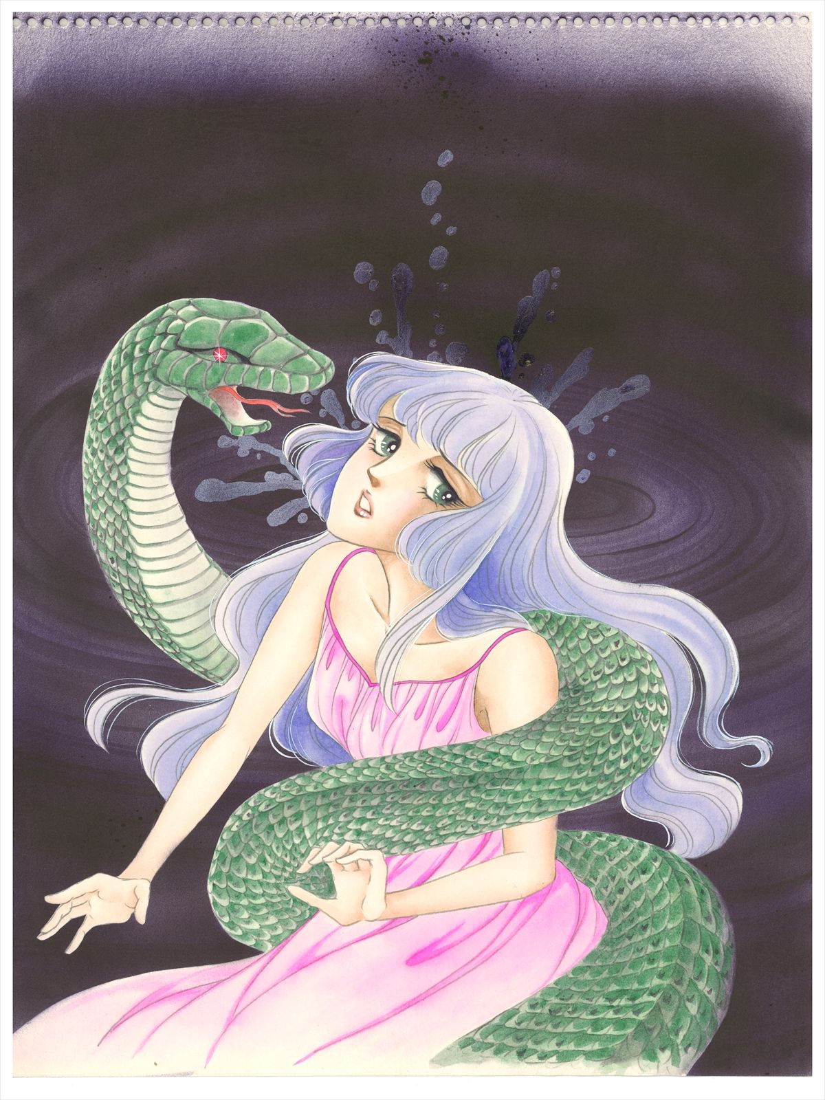 こんにちはアトリエ高階の山野にわとりです。 お正月は酒飲んでクリスタ、飯食ってクリスタ、将棋番組見ながらクリスタとクリスタ三昧でした。(クリスタ以外はただのおっさんですね) クリスタと仲良くなりたくて必死です。 あっ、クリスタっていうのはお絵かきソフトなんですけどね。 さて、今回は蛇のイラストでもご紹介しましょう。 『くらやみに悪魔が』のカバーイラストです。 クリックして拡大してみてくださいね。 1972年「なかよし」1月号掲載、160P 当時は一作のスケールが大きいですよね…。 このイラストは雑誌掲載時のものではなく、後に秋田書店からコミックスが出た時のものだと思います。 ヒロインの抑圧された欲望を誘惑する蛇、というシチュエーション。 「誘惑者」としての蛇の正しい姿ですね。キリスト教世界では蛇はそういう扱いですから。 そして70年代にはホラーといえば蛇のモチーフが大人気でした。 高階作品にもほかに「わたしのなかにへびがすむ」などがありますが、「へびと少女」パターンはホラーの王道で、子供の頃はいっぱい見かけたものでありました。 最近見かけませんね…。 その辺に蛇を見かけることも少なくなったからでしょうか? ちなみに日本では蛇は金運を意味しますから、本当は縁起がいいのですけどね。 一周回ってまた流行らないかなw 2020.01.01 Wed 15:23:36 あけましておめでとうございます!令和2年となりました。